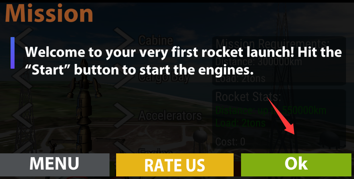 3、欢迎来到你的第一次火箭发射,点击开始发射吧。