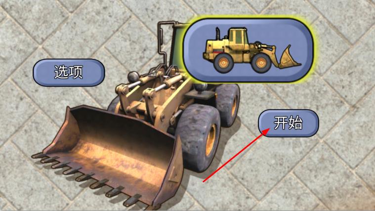 1、进入界面,在关卡选择界面,选择合适的工程车,点击关卡1,开启工程车任务挑战。