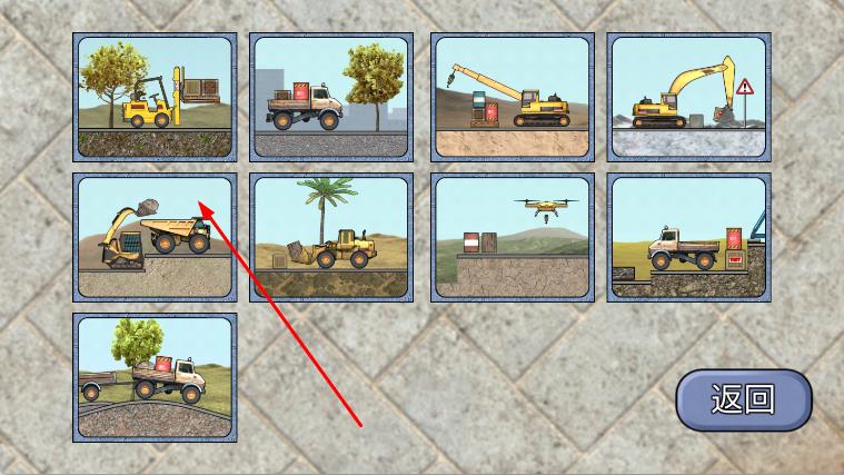 3、完成货物装载后,根据新的任务提示,切换到卡车,控制卡车移动到指定的目的地,成功完成任务后,解锁新的关卡和工程车类型。