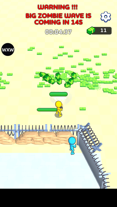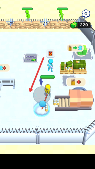 3、弹药补给收集资源:士兵攻击需要子弹,需通过子弹生成机持续制作并补充,确保火力不中断;击杀僵尸后记得收取掉落的金钱,用于招募更多帮手或升级设施。