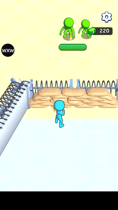 3、战斗中关注金币数额在右上角,优先升级武器或者购买,利用场景掩体沙包,补满状态再推进。