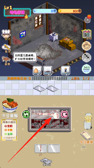 1、进入烧烤店,熟悉烹饪工具和钓鱼基础操作,制作第一份烧烤、尝试首次钓鱼,开启经营与钓鱼的双重之旅。