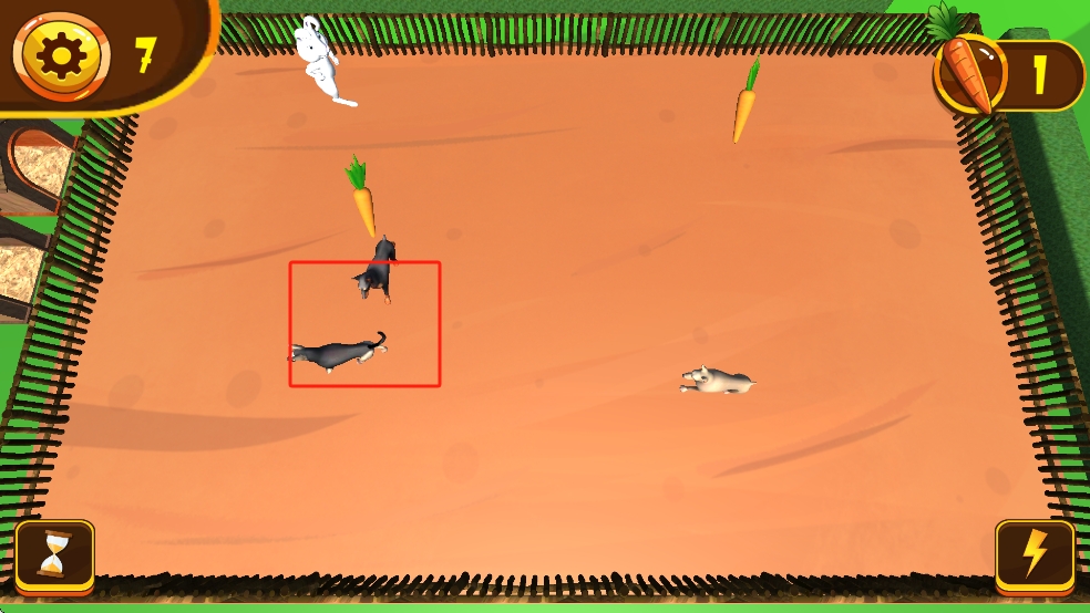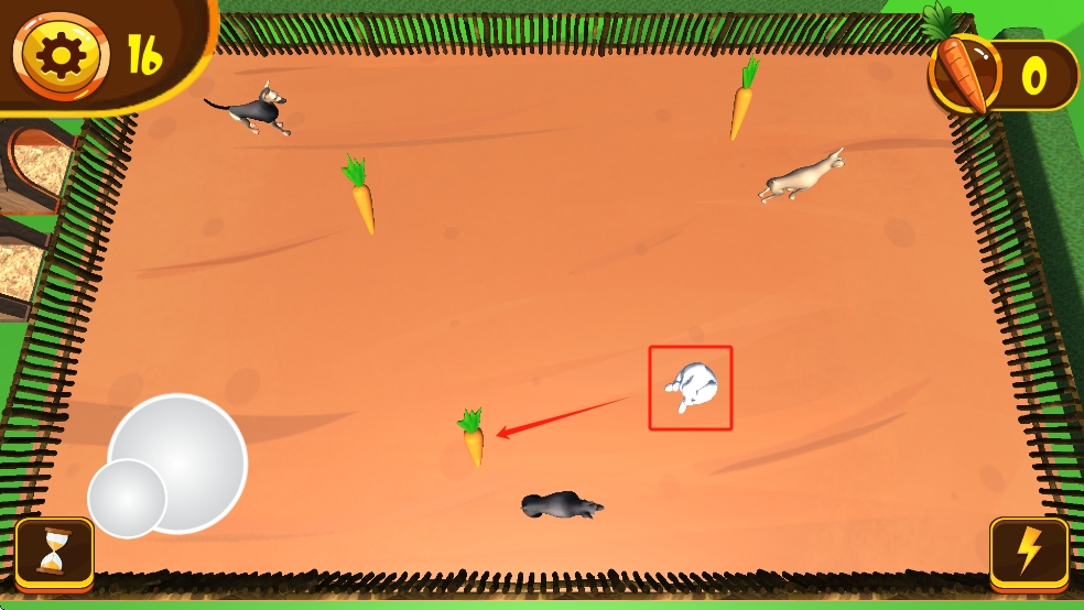 2、持续让兔子获取胡萝卜,留意红框内其他动物动态,避免被阻碍,规划路径,保证兔子顺利吃到更多胡萝卜。