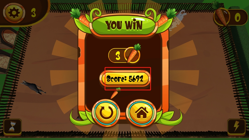3、挑战高分技巧:连续收集胡萝卜可触发连击加成,积分翻倍;用最少的时间完成关卡能获得额外奖励,通过练习提升操作熟练度,冲击更高分数。