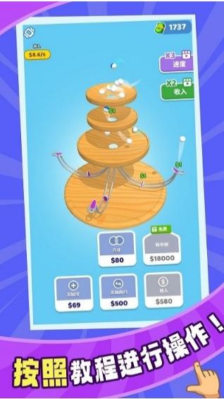 3、持续操作添加、合并消耗资源,积累上方绿色资源,提升圆盘效率,解锁进阶升级路径。