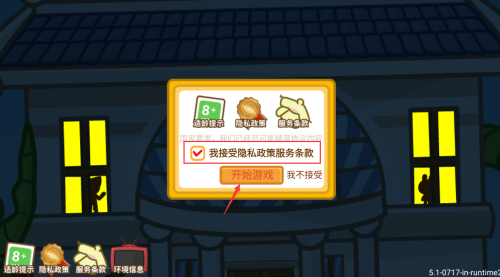 2、点击橙色开始游戏按钮,确认接受隐私政策条款。