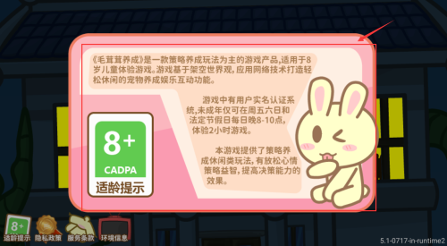 4、查看8+适龄提示,了解毛茸茸养成游戏规则。
