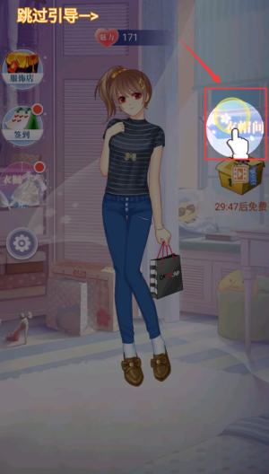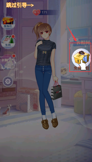 1、点击红框免费领取图标,获取游戏内奖励物品。