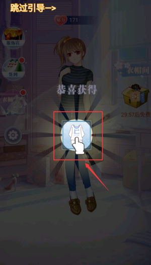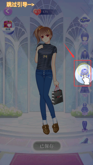 2、点击红框浅蓝上衣图标,为角色更换新服装。