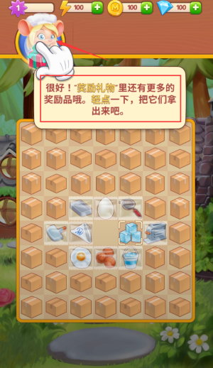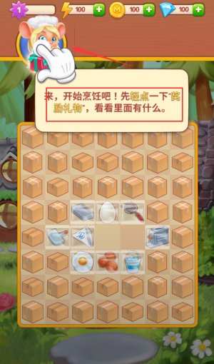 2、点击红框奖励礼物按钮,查看初始烹饪游戏道具。