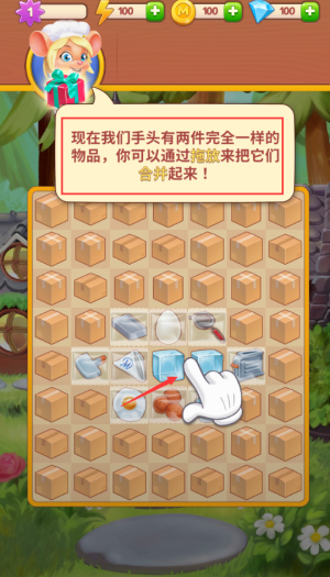 3、按照红框箭头提示,拖放相同物品进行合并升级。