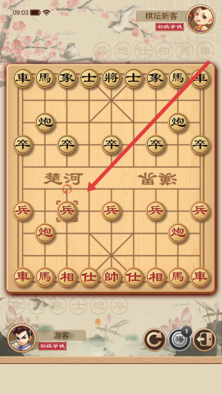 3、进入棋坛新客对战棋盘后,点击红方兵的位置,按照象棋规则移动该棋子,推进棋局进程。