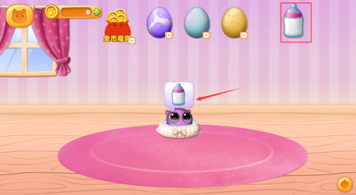 4、点击红框奶瓶图标,给宠物喂食加速成长进度。