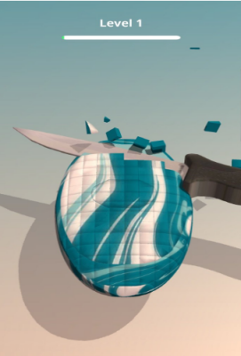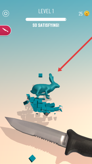 2、通过不断滑动小刀完成切割后,破碎物体会显现出隐藏造型,本关呈现出兔子形状,达成关卡解谜。