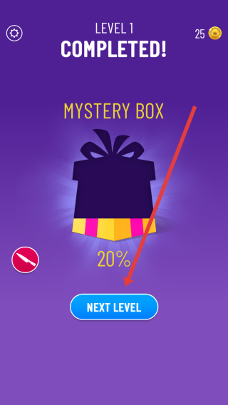 3、在关卡完成界面,通过点击NEXT-LEVEL按钮,获取MYSTERY-BOX进度,进入下一关挑战。