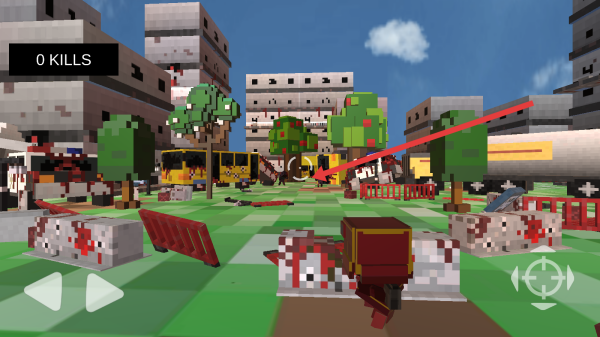 1、左下角的左右键用来移动用户的视角,右手用来瞄准射击右下角的准星,优先瞄准靠近的僵尸。
