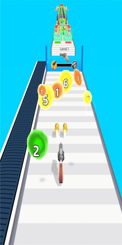 枪炮前进是一款以射击闯关为核心玩法的休闲游戏,玩家操控枪炮在独特的跑道场景中前行,沿途收集各类增益道具强化火力,精准射击阻拦的红色小人,通过巧妙规划射击路线与时机,突破重重关卡,从基础试炼逐步迈向高难度挑战,在简洁明快的画面风格中,体验紧张刺激又趣味十足的射击冒险。