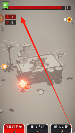 1、进入场景,选择初始武器,尝试对目标进行首次轰炸,熟悉操作方式,开启爽快的轰炸之旅。