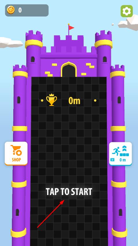 1、进入界面,点击屏幕中间TAP TO START,红色小人出现在屏幕下方,上方会不断掉落方块。