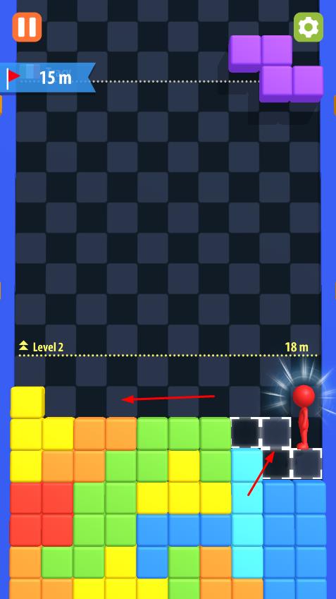 2、应对加速与调整策略:关卡推进后,方块下落变快、数量增多,需缩短反应时间,预判落点调整路线,在密集方块中寻找空隙。