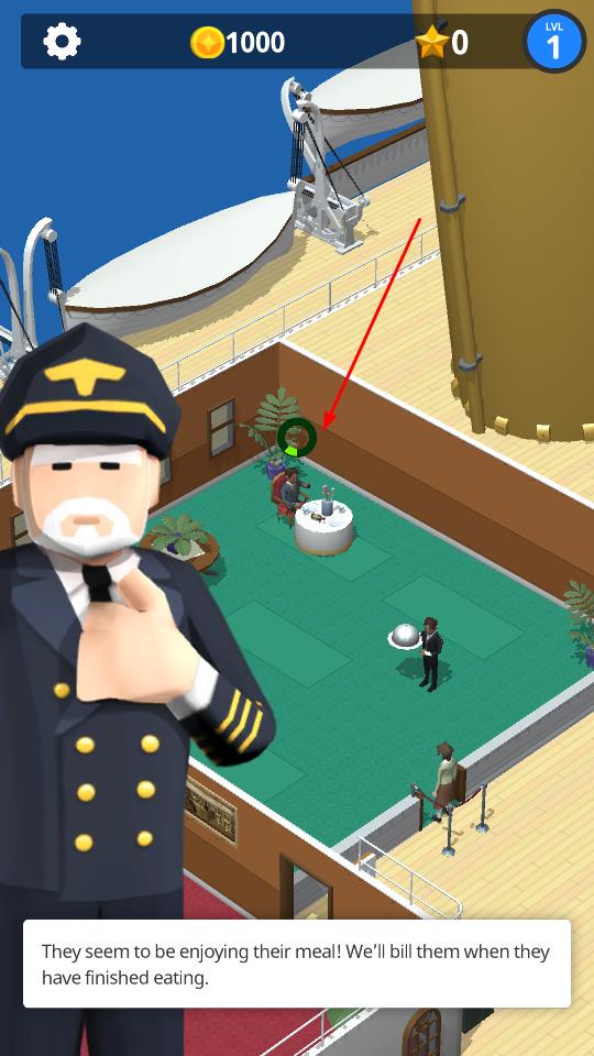 1、上方显示金币1000、星星0,处于LVL1阶段,乘客将在游轮探索找事做,可先熟悉游轮布局,如船长所在的甲板及各功能区域。