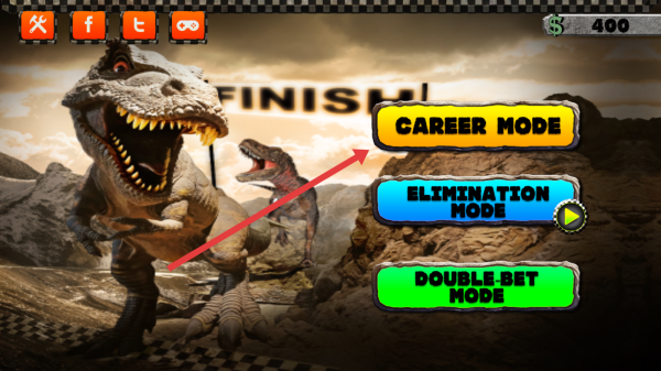 1、在初始界面点击CAREER-MODE按钮,进入生涯模式选择关卡,开启恐龙竞速挑战之旅。