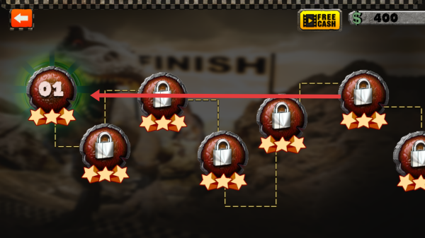 2、在关卡选择界面,通过点击标有01且带三星的关卡,进入该生涯模式的具体竞速赛道。