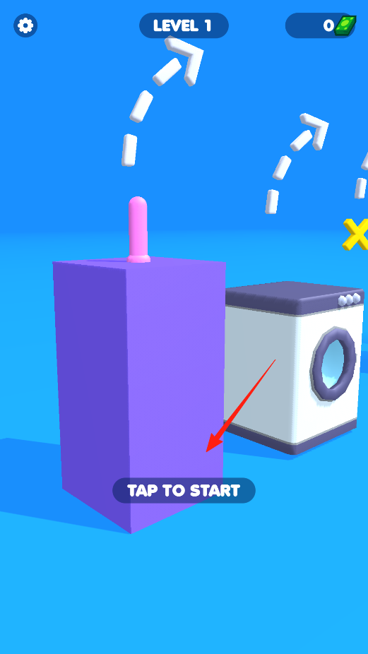 1、点击TAP TO START让吸盘启动。物体将沿箭头轨迹移动,需避开障碍朝着目标前行,开启关卡挑战,体验启动引导机制。