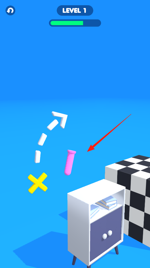 2、观察吸盘移动路径,引导其避开黄色叉形障碍。通过预判轨迹让物体顺利通过,抵达下一场景,体验障碍规避玩法。