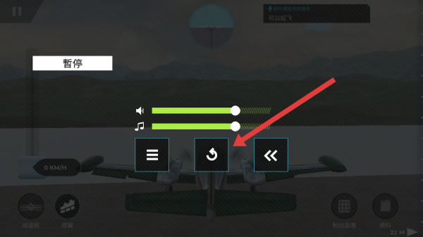 2、进入游戏的暂停界面,可以点击箭头指向的重置图标,重新开启当前飞行挑战的流程。