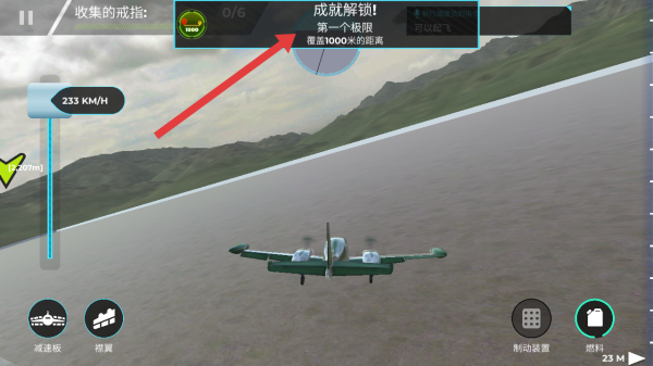 3、在驾驶飞机飞行,当覆盖1000米距离时,会解锁第一个极限成就,同时关注戒指收集进度。