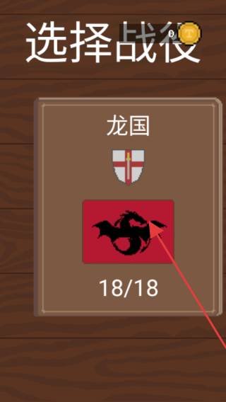 2、在游戏的主场景中,根据红色箭头所指的方向,选择龙国战役,开始进行游戏任务。