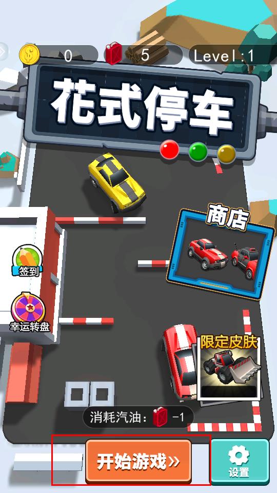 1、点击开始游戏按钮,消耗汽油开启停车挑战,投身趣味关卡,这是开启游戏的必要步骤。