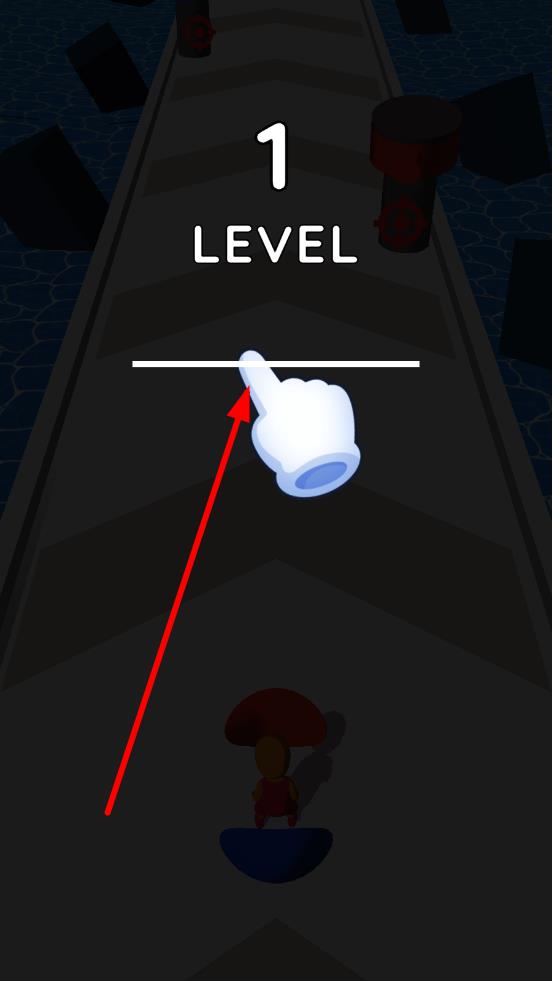 1、进入游戏后,玩家将在黑暗的栈道起点处,长按屏幕上的指引位置,使角色精准踩上彩色盾牌,启动第一关的跑酷挑战。