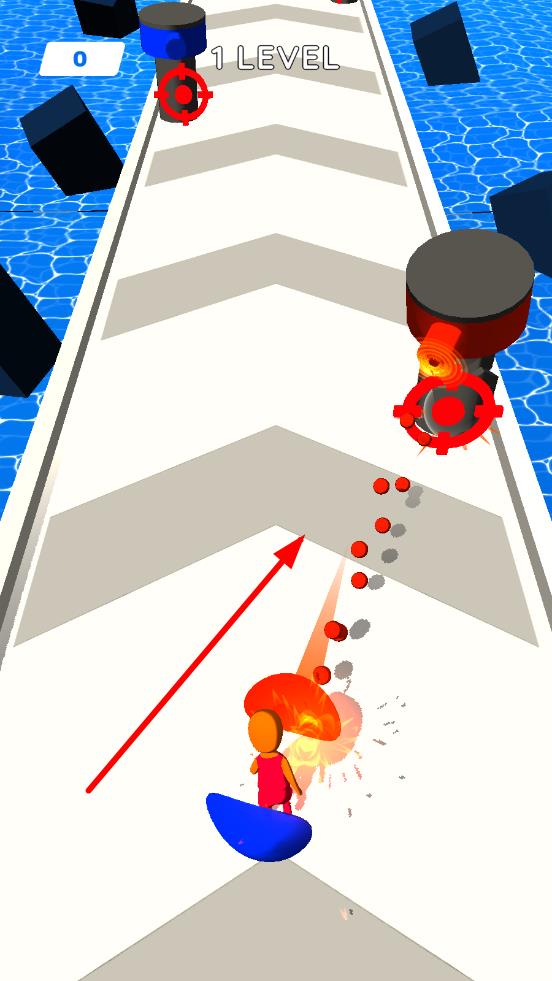 2、遭遇各种旋转机关和障碍阻拦,玩家需快速滑动屏幕调整角色与盾牌的方向,将炮塔发射的子弹全都反弹回去。