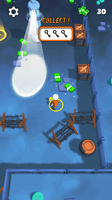 冲上卡车一款潜行躲避的逃脱游戏,为你带来紧张又刺激的闯关体验,在游戏中你需要控制角色在复杂场景中穿梭,巧妙躲避岗哨的视线监控,收集钥匙等道具,最终打开大门成功逃离,超简单的滑动操作搭配多变的关卡设计,让你在每一次尝试中都能收获新的乐趣。