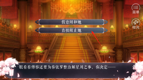 3、根据情境,选择假意附和她或直接阻止她,决策影响角色关系和事件走向,体验策略抉择机制。