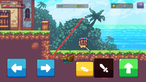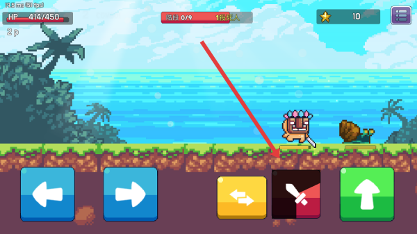 2、进入关卡后,操控角色移动,遇到敌人时,利用左侧蓝色方向键调整位置,准备应对挑战。