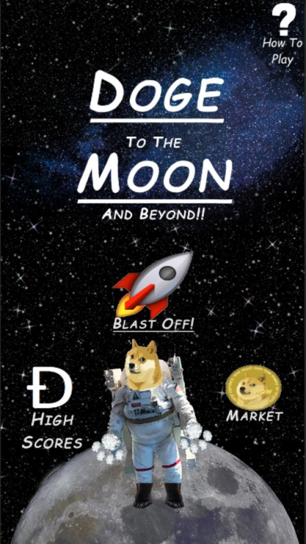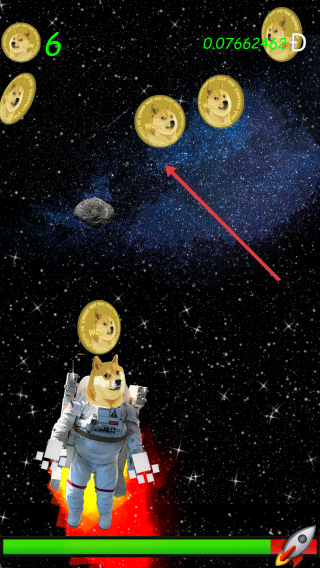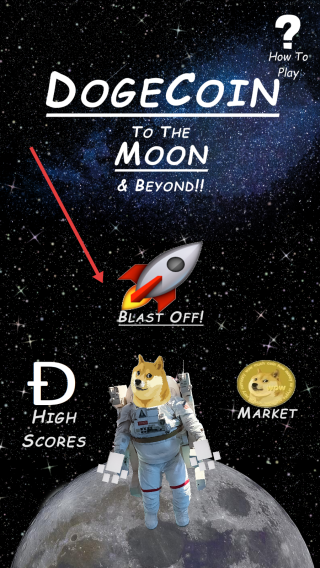 1、点击主界面Blast Off,进入太空场景,操控宇航员狗狗,开启收集狗狗币、躲避陨石的冒险流程。