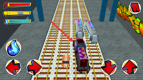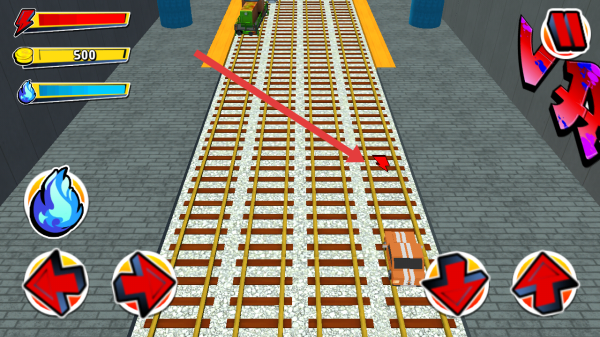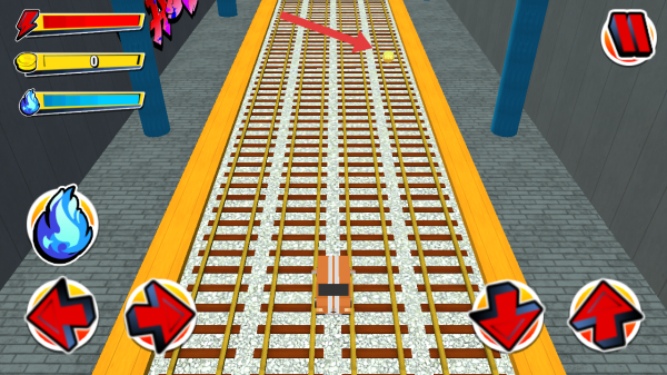 2、在行驶时留意轨道上的红色闪电标志,需要及时改变方向拾取这个道具,增加驾驶的速度。