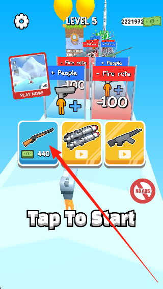 2、冲刺闯关积奖励:挑战不同赛道,专注于向前冲的同时,优先躲避致命陷阱,瞄准出现的敌人进行射击,通过消灭更多敌人积累奖励。
