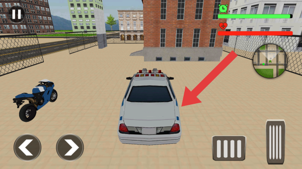 3、从警车、城市场景及操作按钮看,玩家可操控警车在城市执行巡逻、追捕等任务,画面呈现出典型的模拟驾驶玩法界面。