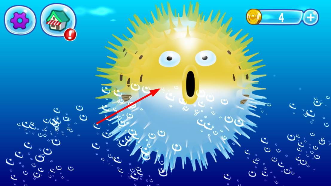3、生动的角色与反馈:河豚鲍勃的表情和动作十分到位,被小鱼骚扰时的不耐烦,被戳后膨胀成刺球的反应都充满喜感,搭配小鱼聚集时的动态表现,让过程充满趣味与代入感。