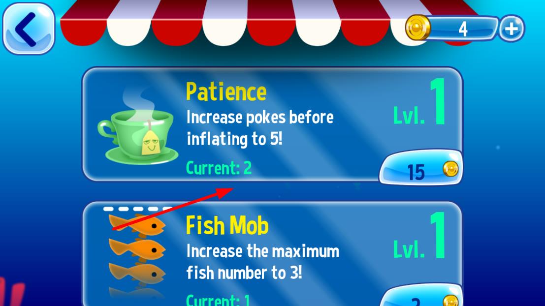 3、用获得的金币到左上角商店升级鲍勃的能力(如移动速度、吸引范围等),提升后续挑战中吸引小鱼和躲避攻击的能力,不断突破自己的记录。