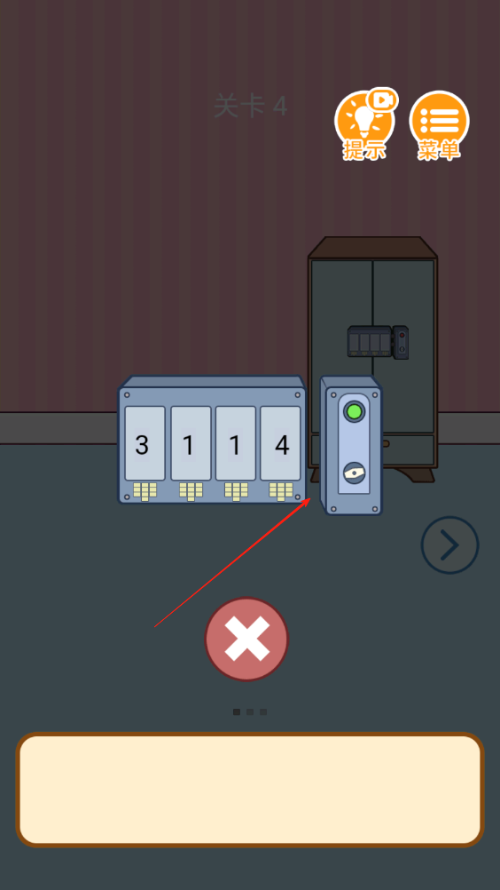 3、先将电视柜推开,找到密码柜的密码3114,打开后找到西瓜,再点击密码柜下方抽屉,找到一颗弹力球,用弹力球引走小猫,找到小猫下面藏着的刀子。