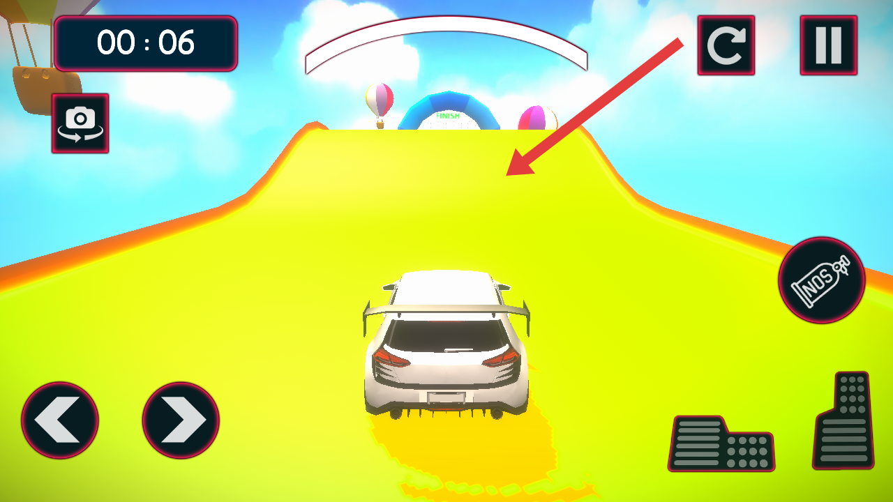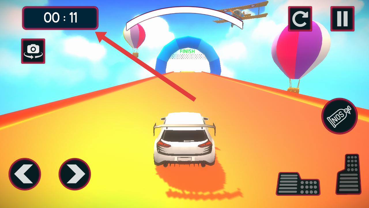 1、开局留意左上角计时,操控车辆沿着赛道朝这FINISH拱门行驶,把控好驾驶的时间。