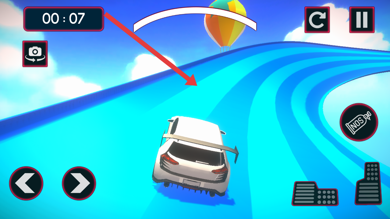 1、特技操控把控:通过虚拟按钮操作,控制赛车在陡峭坡道行驶,猛踩油门保持动力,同时调整方向应对急转弯与跳跃障碍,精准把控操作力度完成特技动作。