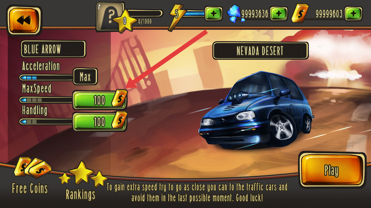 2、赛车强化策略:收集金币后针对性升级赛车,优先强化速度提升超车效率,或强化操控增强躲避灵活性,根据玩法习惯制定强化,适配更高难度路段。