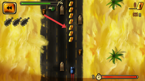 1、公路疾驰操控:驾驶赛车在公路疾驰,通过灵活转向躲避对向车辆与障碍,同时精准收集沿途金币,平衡速度与操控以持续推进,提升行驶距离与收益。