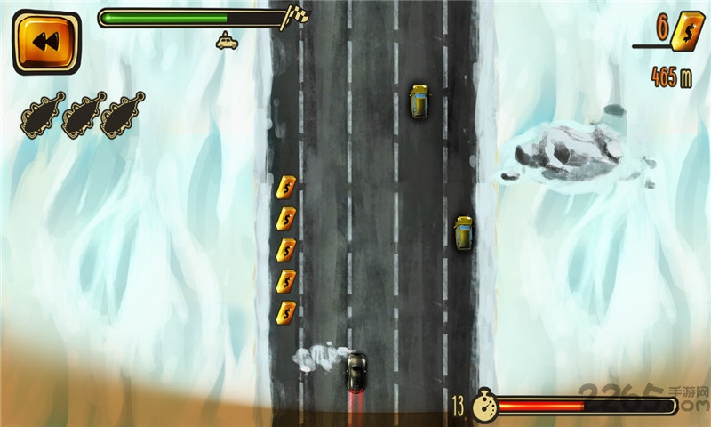 3、游戏过程中,操控赛车躲避周边车辆,沿着金币分布路线行驶,高效收集金币用于后续强化。